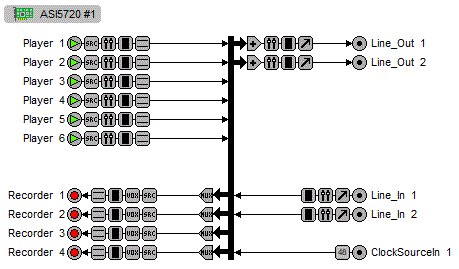 Providing up to 6 play streams that are mixed to 2 balanced stereo outputs and 4 record streams fed from 2 balanced stereo inputs, the ASI572x series features AudioScience's unique "anything to anywhere" mixing and routing.