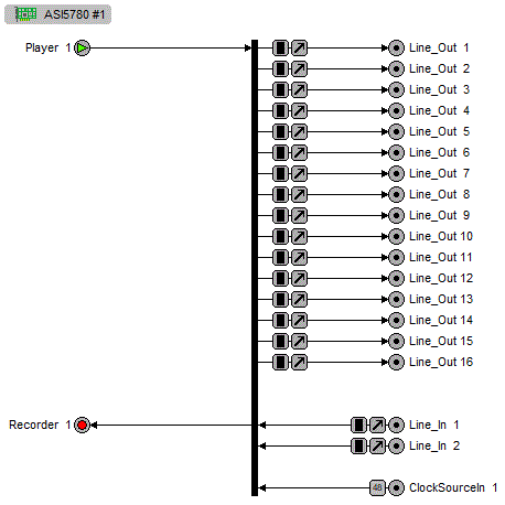 Providing up to 24 play streams that are mixed to 8 balanced stereo outputs and 1 record stream fed from 1 balanced stereo input, the ASI5780 features AudioScience's unique "anything to anywhere" mixing and routing.